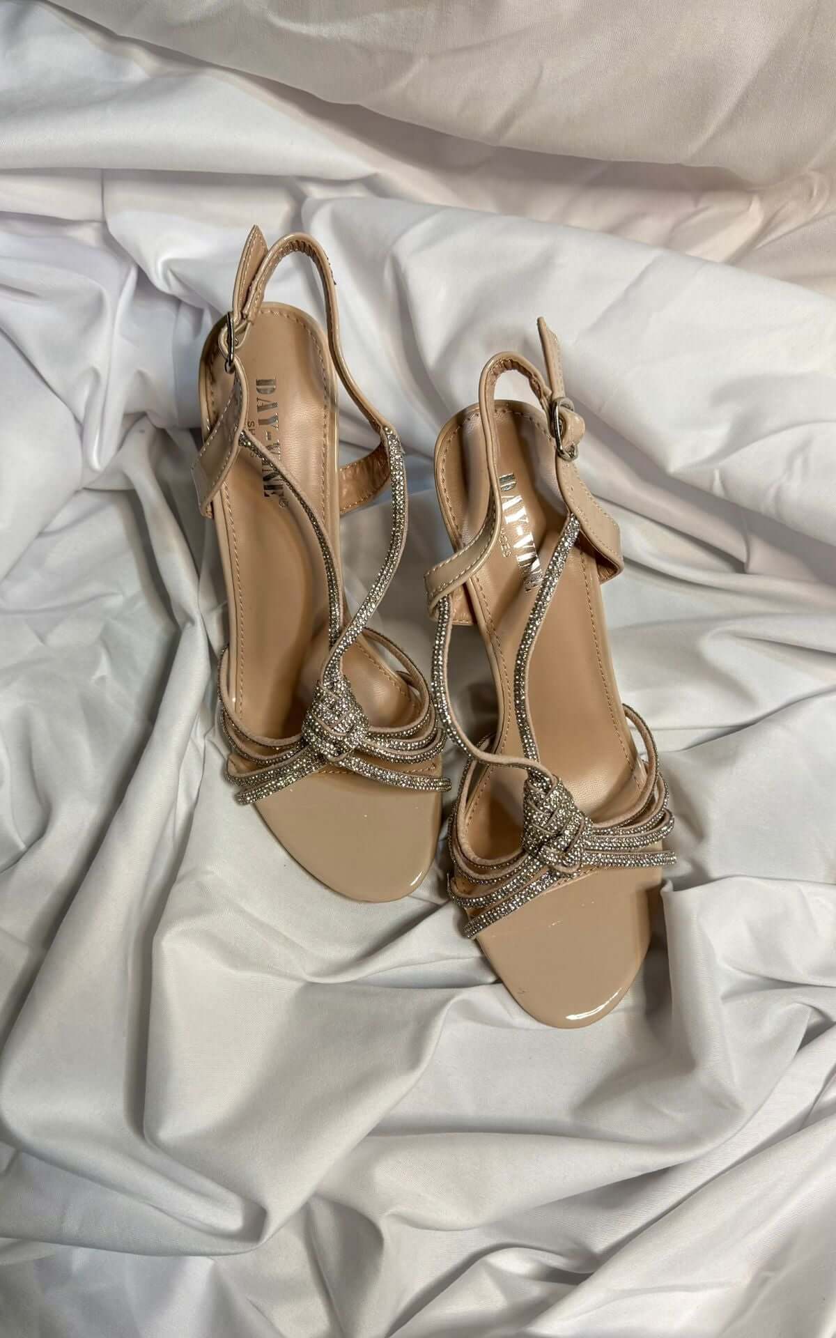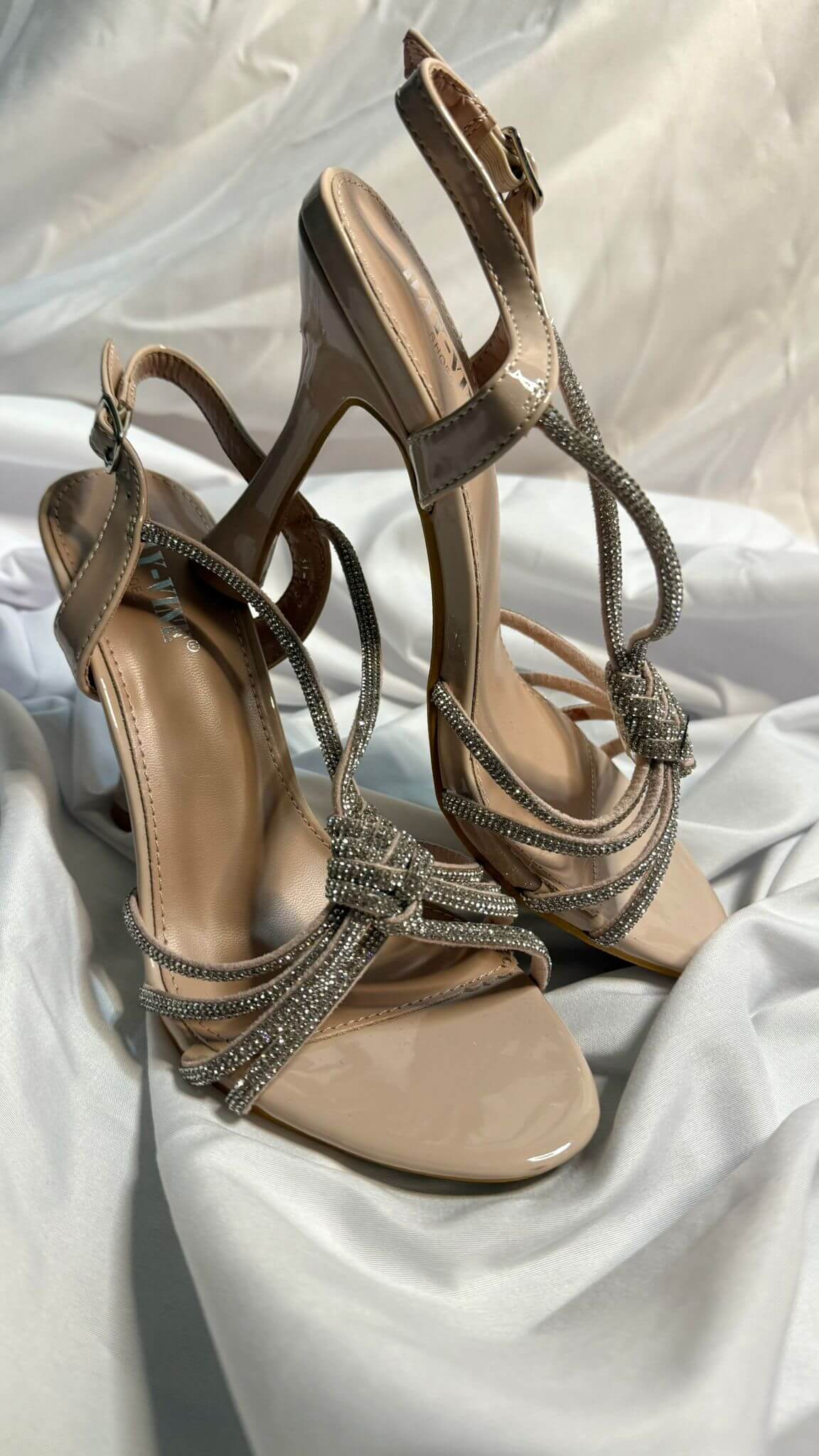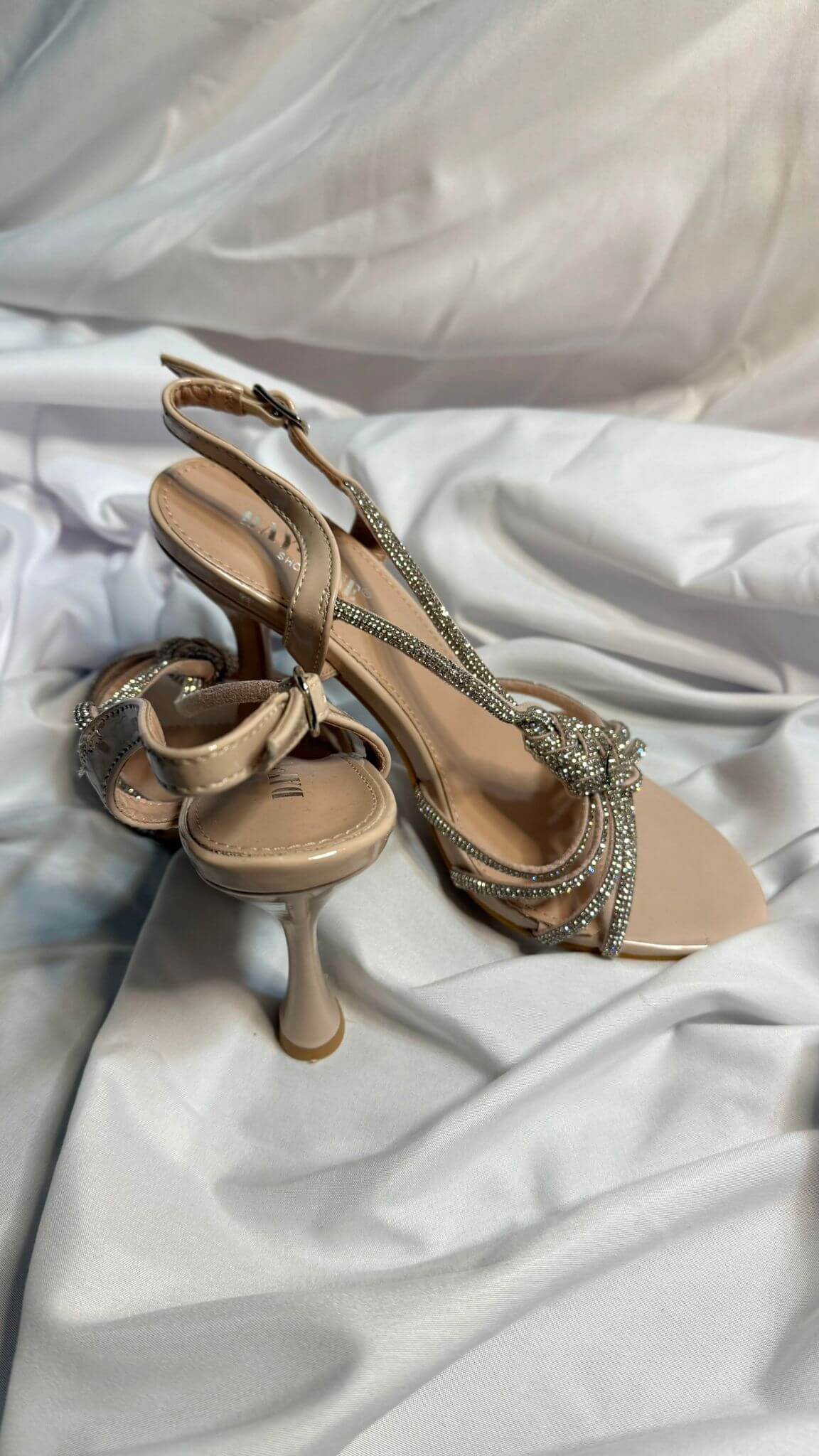 Aceste sandale bej cu toc subțire și barete decorate cu strasuri sunt alegerea perfectă pentru un look elegant și rafinat. Designul strălucitor oferă un plus de glamour, iar forma delicată subliniază feminitatea. Se potrivesc de minune cu rochii de seară, salopete sau ținute de ocazie. Tocul confortabil și prinderea sigură pe gleznă îți oferă susținere și stil în același timp.